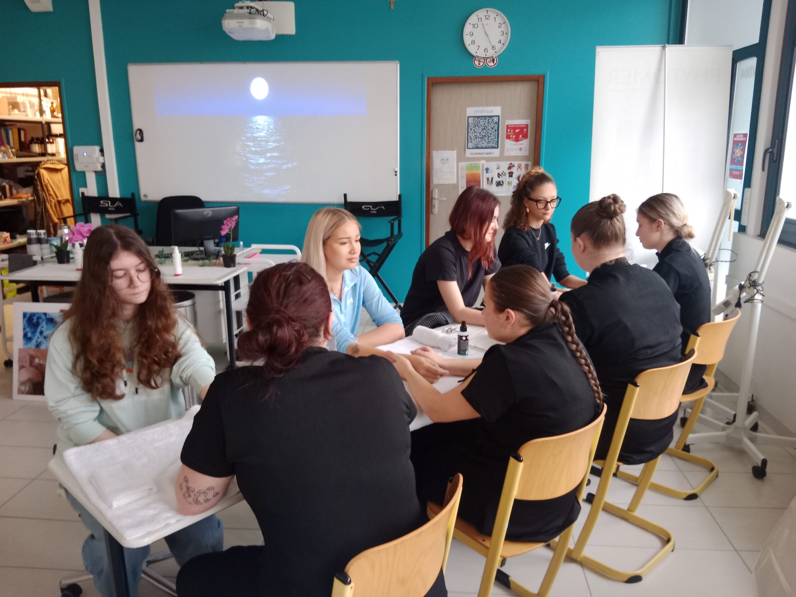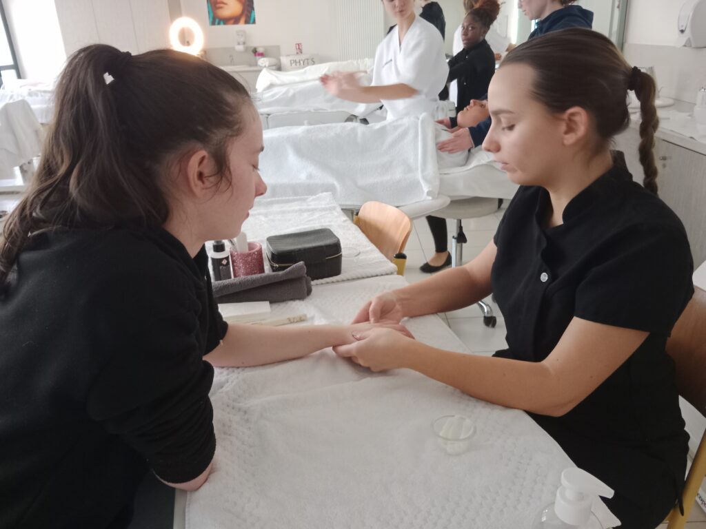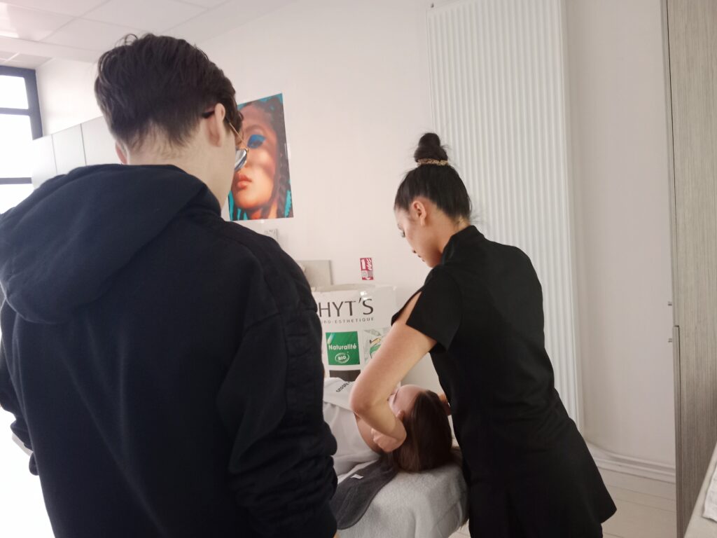 À cette occasion, les élèves de terminale esthétique ont assuré la formation des élèves du lycée Saint-Vincent de Paul aux techniques de massage des mains et du visage. Une belle initiation au métier de formatrice et même socio esthéticienne ! 🤓